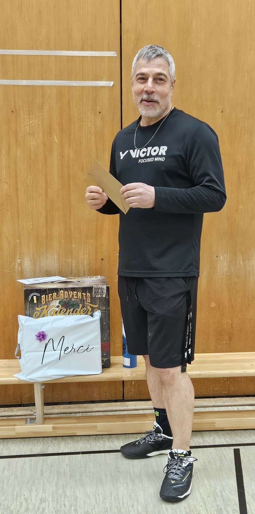 Als kleines Dankeschön gedacht, konnte ihm Abteilungsleiterin Natascha Götz nun am Montag durch die zahlreichen Beiträge von Spielerinnen und Spielern ein durchaus größeres Geschenk im Namen Aller überreichen. Die Überraschung im Training ist geglückt und Markus war sichtlich erfreut!